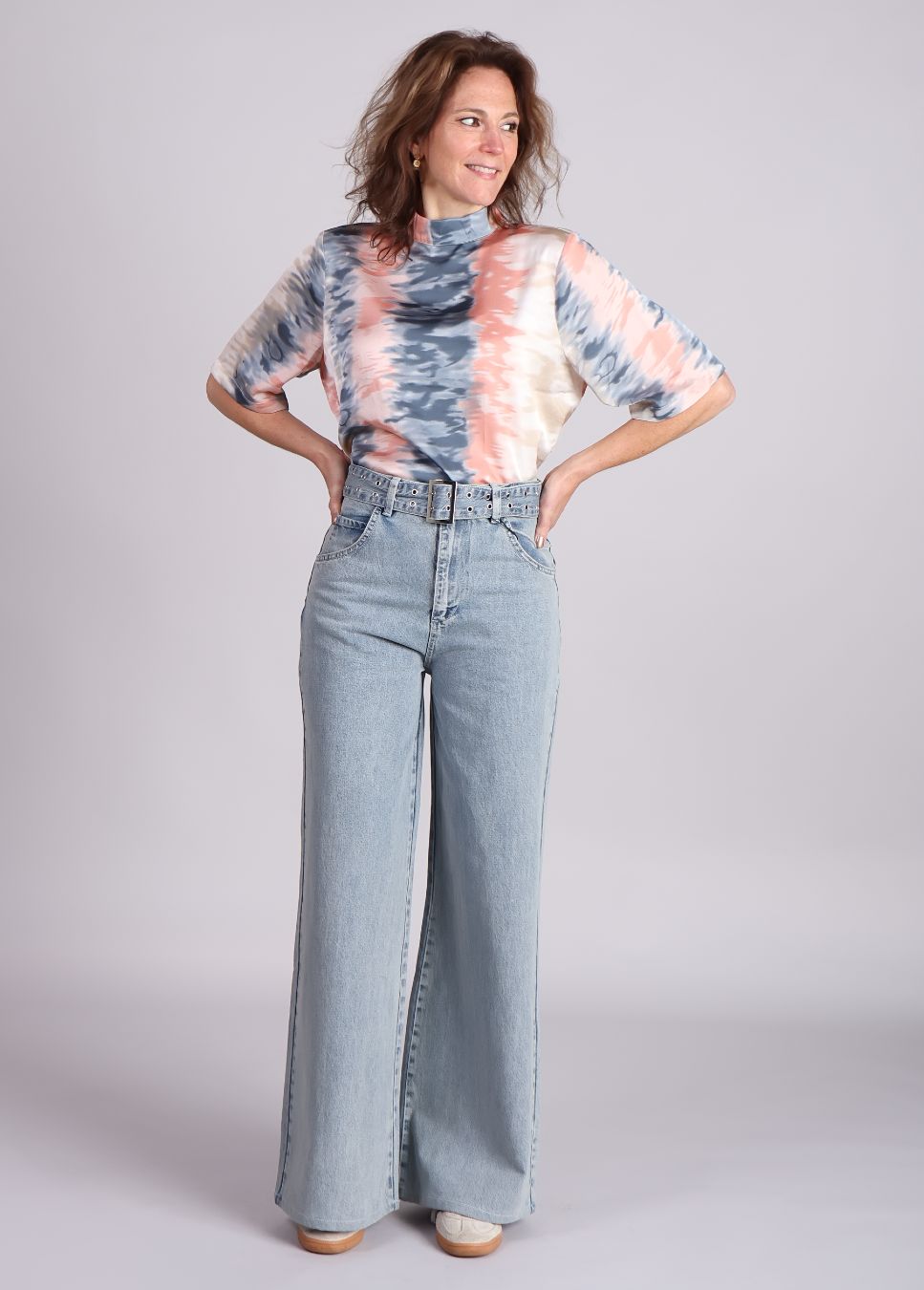 Maak een statement met de stijlvolle Palazzo Jeans with Belt van Homage. Deze moderne jeans met een wide-leg fit en high-rise taille combineert tijdloos design met een trendy twist. De authentieke random mid-blue wassing geeft een frisse look, terwijl de bijpassende riem je taille extra accentueert. Perfect voor wie houdt van een eigentijdse outfit die zowel comfortabel als chic is.
