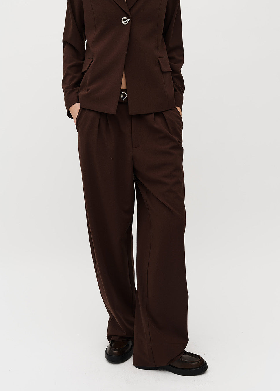 De Rosalyn-M broek van mbyM is de perfecte mix van elegantie en comfort. De rijke donkerbruine kleur in combinatie met de losvallende wide leg-pasvorm geeft elke look een verfijnde, moderne twist. Dankzij de middelhoge taille en soepele bandplooien aan de voorkant oogt de broek moeiteloos chic, of je nu op kantoor bent, een city stroll maakt of een etentje op de planning hebt.