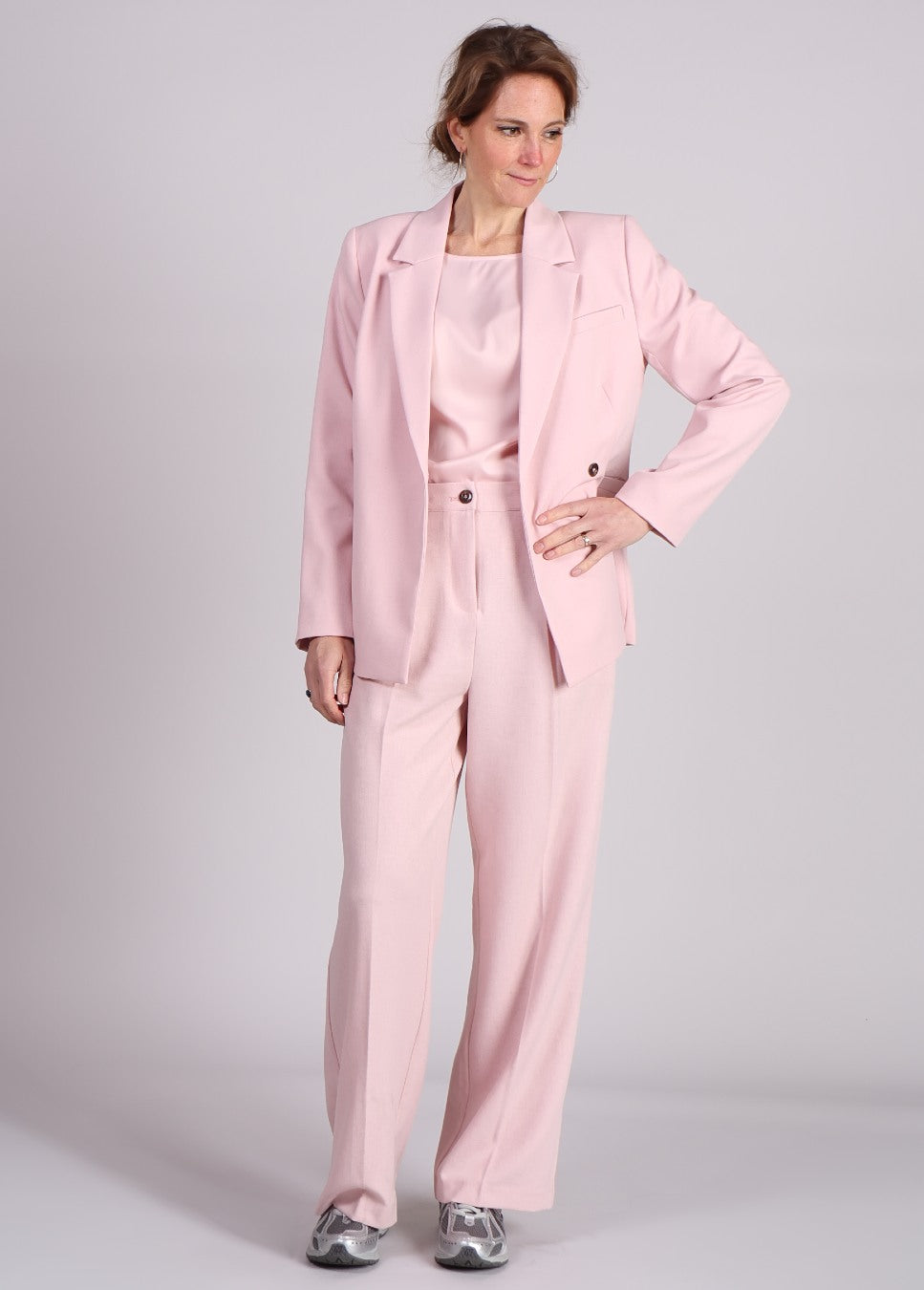 De Modstrom MylaMD top in roze is een verfijnde essential met een subtiele glans. Gemaakt van een luxueuze mix met gerecycled polyester, biedt deze top een duurzame en stijlvolle keuze. De losse pasvorm zorgt voor een moeiteloze look, terwijl de ronde hals en geplooide mouwen een vrouwelijke touch toevoegen. Perfect om te combineren met een chique rok of een high-waist broek voor een elegante uitstraling. Ook super leuk te combineren onder het roze Maxwell pak van Modstrom.