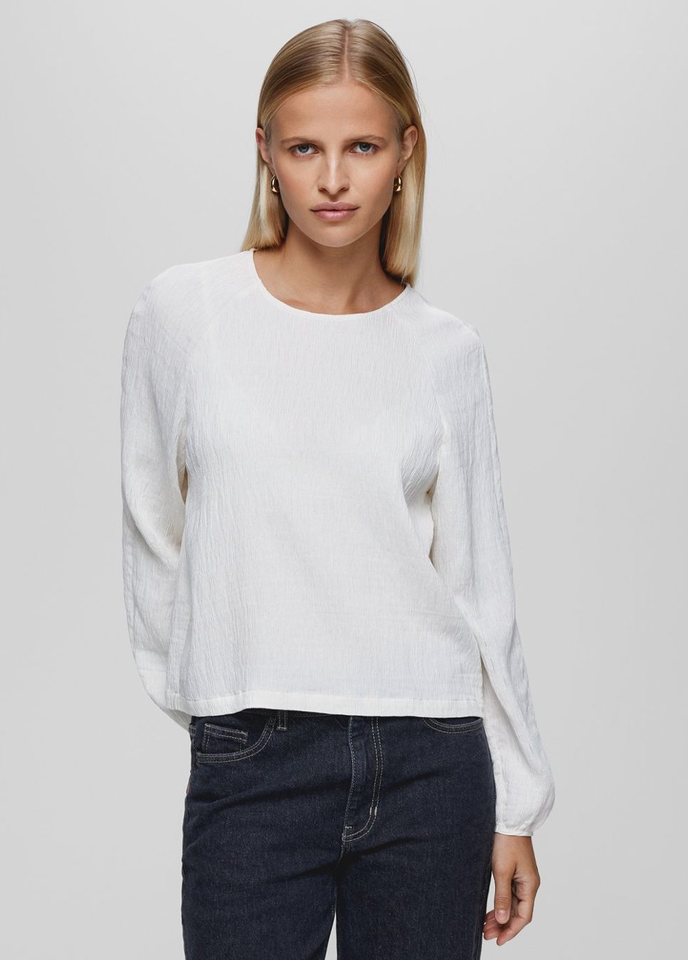 MSCH Copenhagen Witte blouse met structuur en ronde hals Miesha